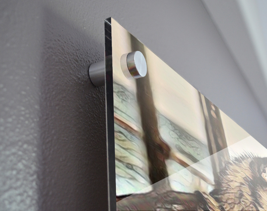 Printed to the edge - Ready to hang - provided with 4 premium polished aluminum stand off ( wall screws and mounting hardware provided ) We suggest a thicker 3/16" acrylic for any size over 42 inches to guarantee a straight acrylic, without curvature
