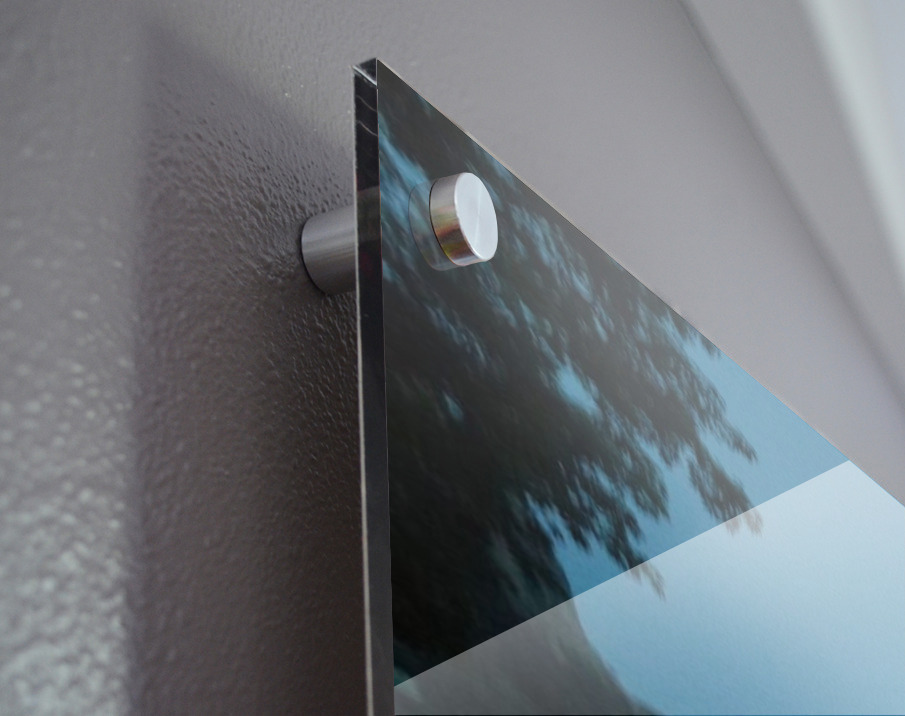Printed to the edge - Ready to hang - provided with 4 premium polished aluminum stand off ( wall screws and mounting hardware provided ) We suggest a thicker 3/16" acrylic for any size over 42 inches to guarantee a straight acrylic, without curvature