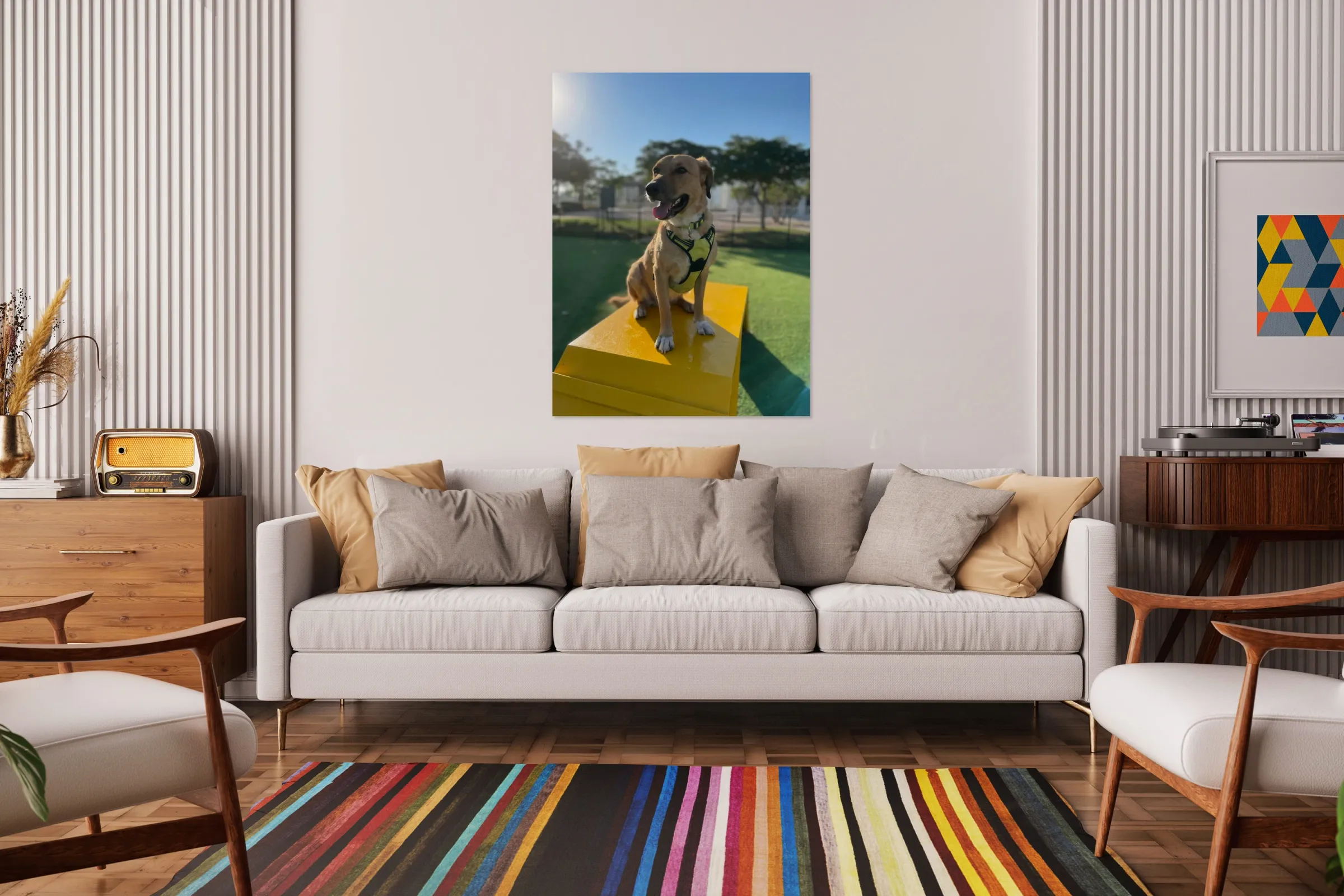Rufus The Happy Dog  HD Metal print with Floating Frame on Back