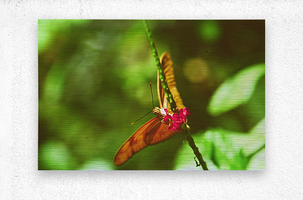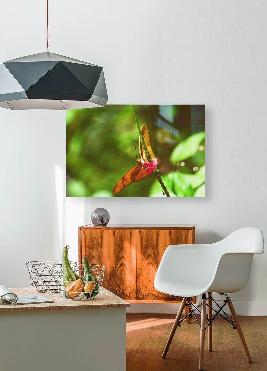 Orange butterfly having a drink HD Sublimation Metal print
