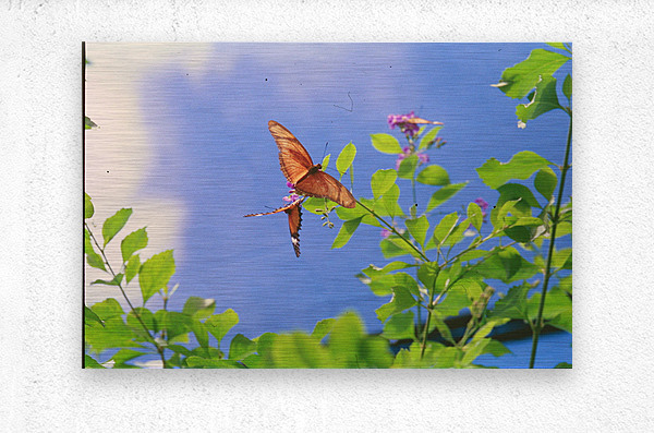 Orange butterflies playing  HD Metal print with Floating Frame on Back
