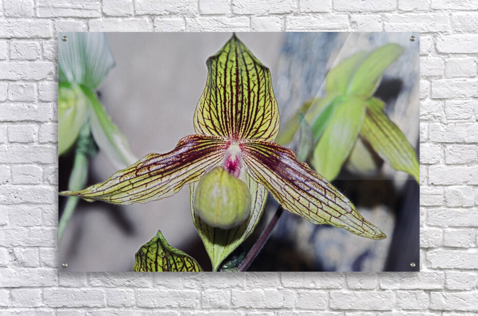 Green Striped Orchid  HD Metal print with Floating Frame on Back