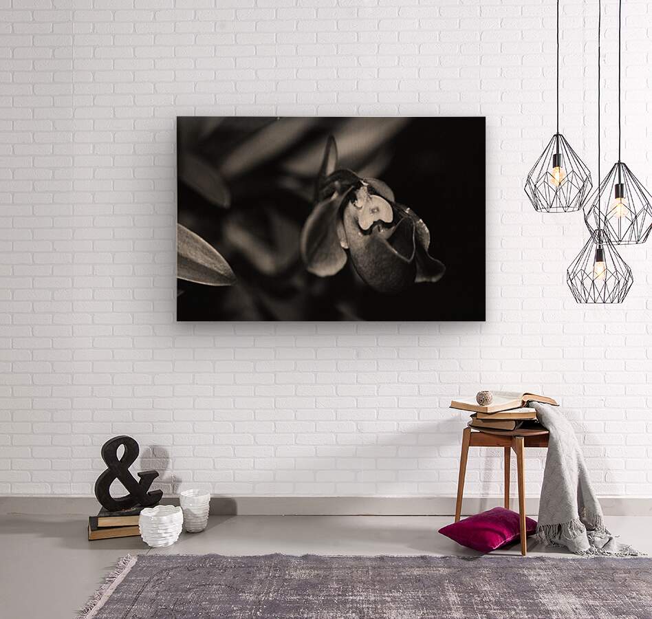 Black  White Floral Series 6  Wood print