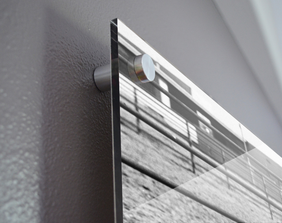 Printed to the edge - Ready to hang - provided with 4 premium polished aluminum stand off ( wall screws and mounting hardware provided ) We suggest a thicker 3/16" acrylic for any size over 42 inches to guarantee a straight acrylic, without curvature