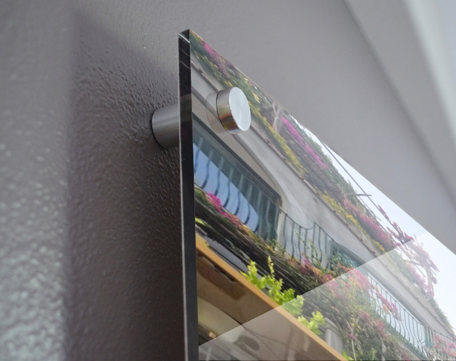 Printed to the edge - Ready to hang - provided with 4 premium polished aluminum stand off ( wall screws and mounting hardware provided )
