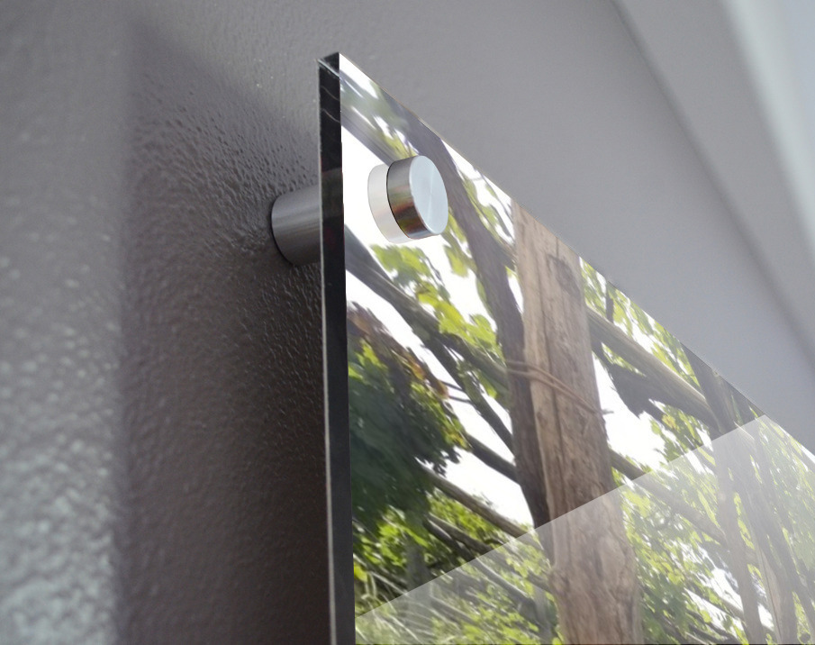 Printed to the edge - Ready to hang - provided with 4 premium polished aluminum stand off ( wall screws and mounting hardware provided )