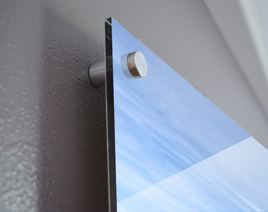 Printed to the edge - Ready to hang - provided with 4 premium polished aluminum stand off ( wall screws and mounting hardware provided ) We suggest a thicker 3/16" acrylic for any size over 42 inches to guarantee a straight acrylic, without curvature