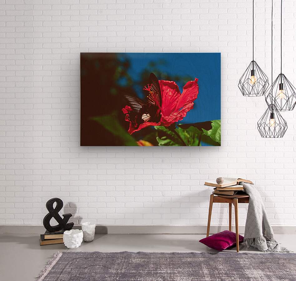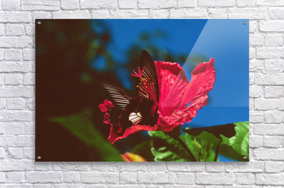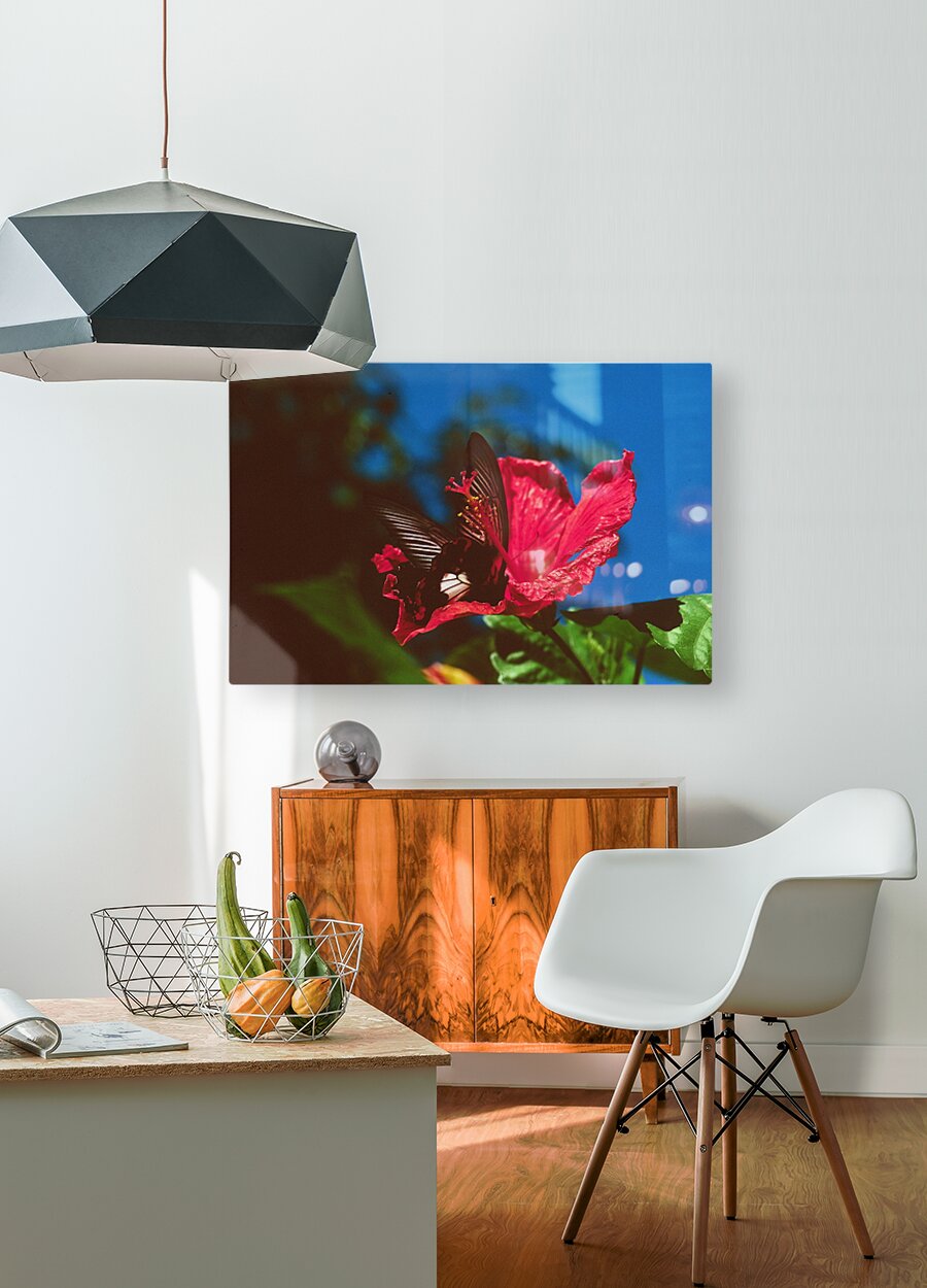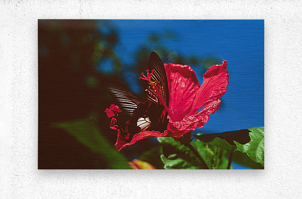 Black Butterfly Merge With The Red Flower HD Sublimation Metal print