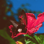 BLACK BUTTERFLY MERGE WITH THE RED FLOWER