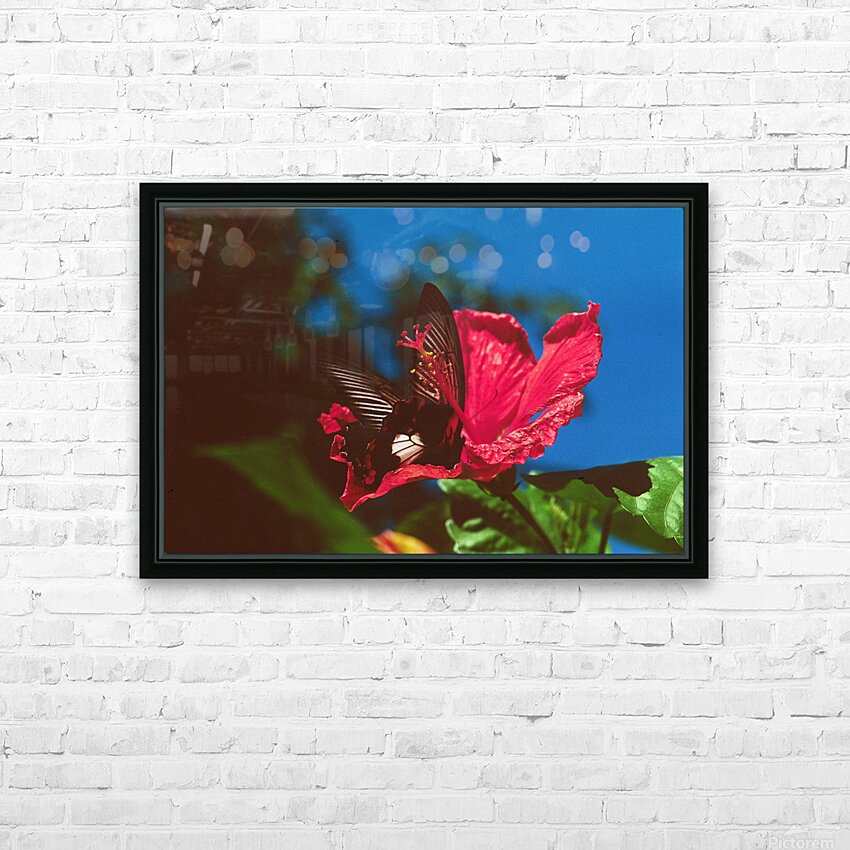 Black Butterfly Merge With The Red Flower  HD Metal print with Floating Frame on Back