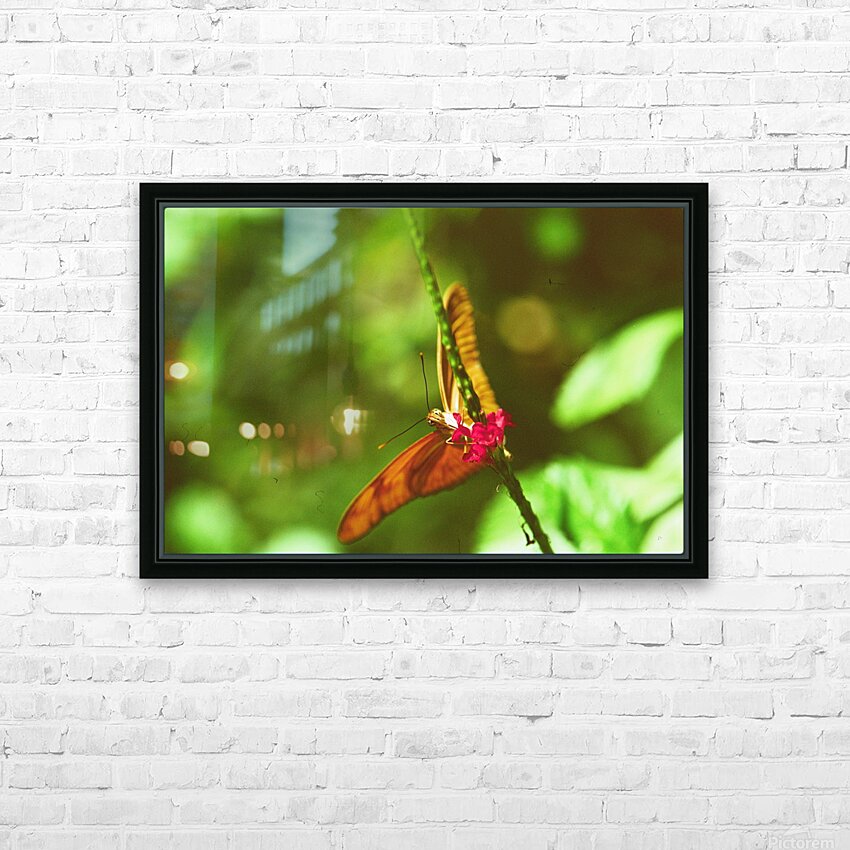 Orange butterfly having a drink  HD Metal print with Floating Frame on Back