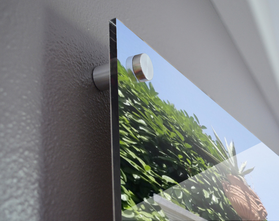 Printed to the edge - Ready to hang - provided with 4 premium polished aluminum stand off ( wall screws and mounting hardware provided )