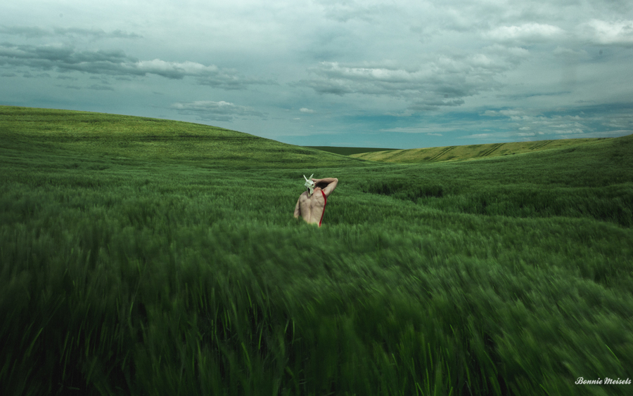 Woman amidst green field. Original public domain image from Wikimedia Commons